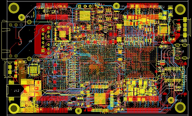 We spent close to two months optimizing the design for cost (ie reducing component counts and scouring the data-books for inexpensive high quality alternatives) in order to get within striking distance of the $99 price target. Unfortunately there wasn’t much that could be done about the complexity of the board layout due to the abundance of high speed differential routing, 0.8mm pitch BGAs, and tight component placement. The Parallella is now a 12 layer board with aggressive line and drill hole dimensions.